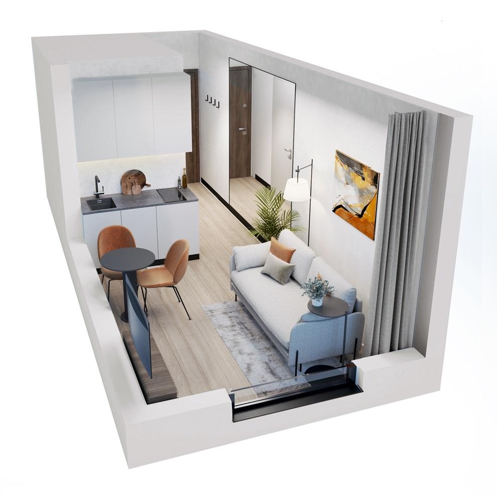 Investment flats are commercial units with a hotel function, equipped with a turnkey bathroom and adapted for the installation of a kitchenette in the living area.